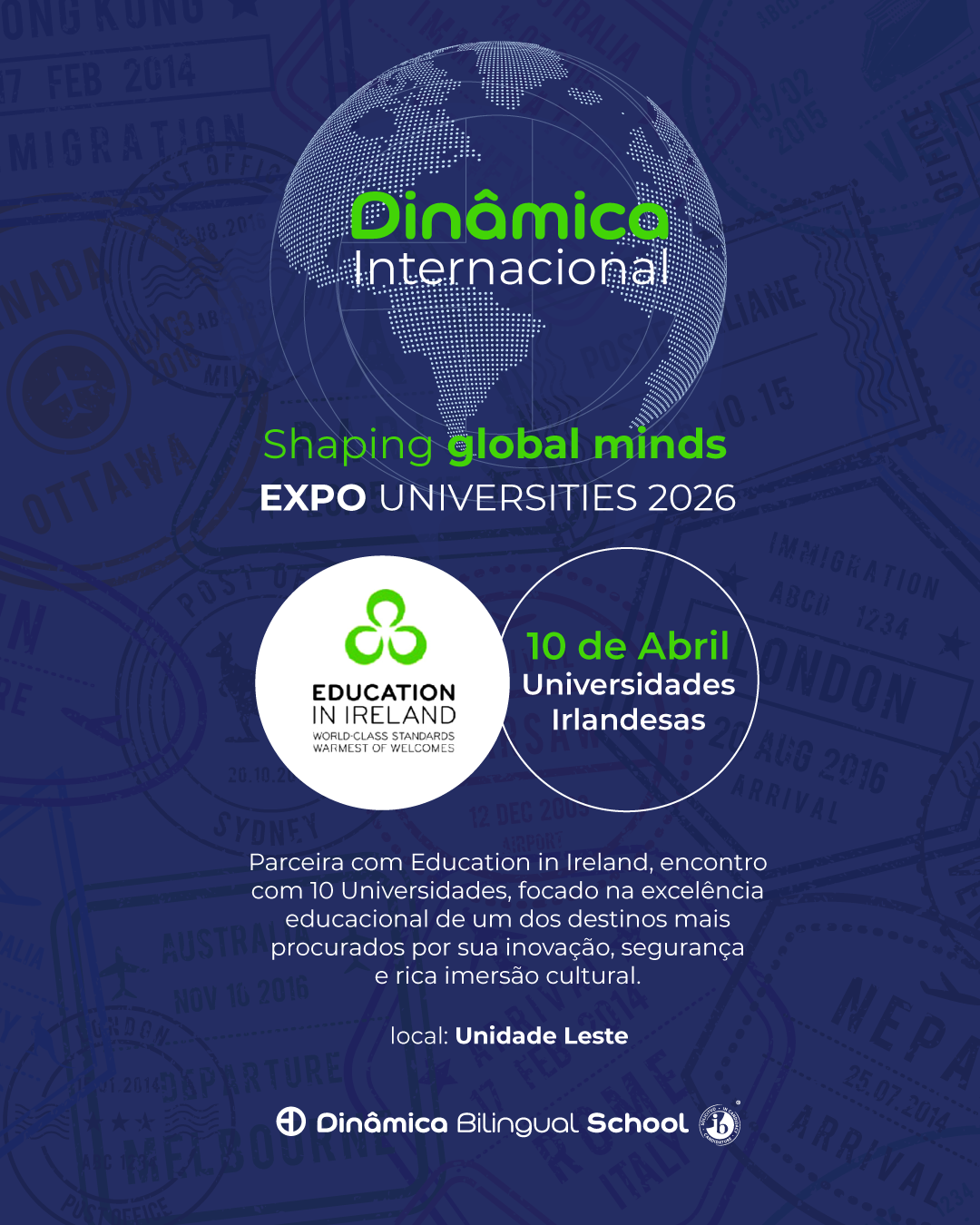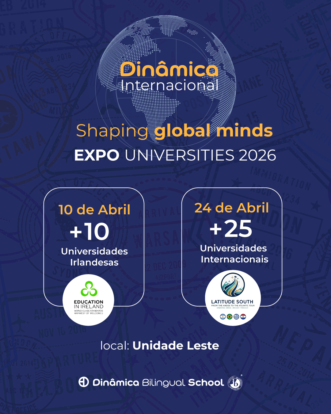 Em 2026, a Dinâmica ultrapassa a fronteira do bilinguismo para se consolidar plenamente como uma escola internacional. Esse movimento representa mais do que uma evolução acadêmica: é a materialização do nosso propósito de formar cidadãos globais, multiculturais e preparados para dialogar com o mundo de forma autêntica e consciente.