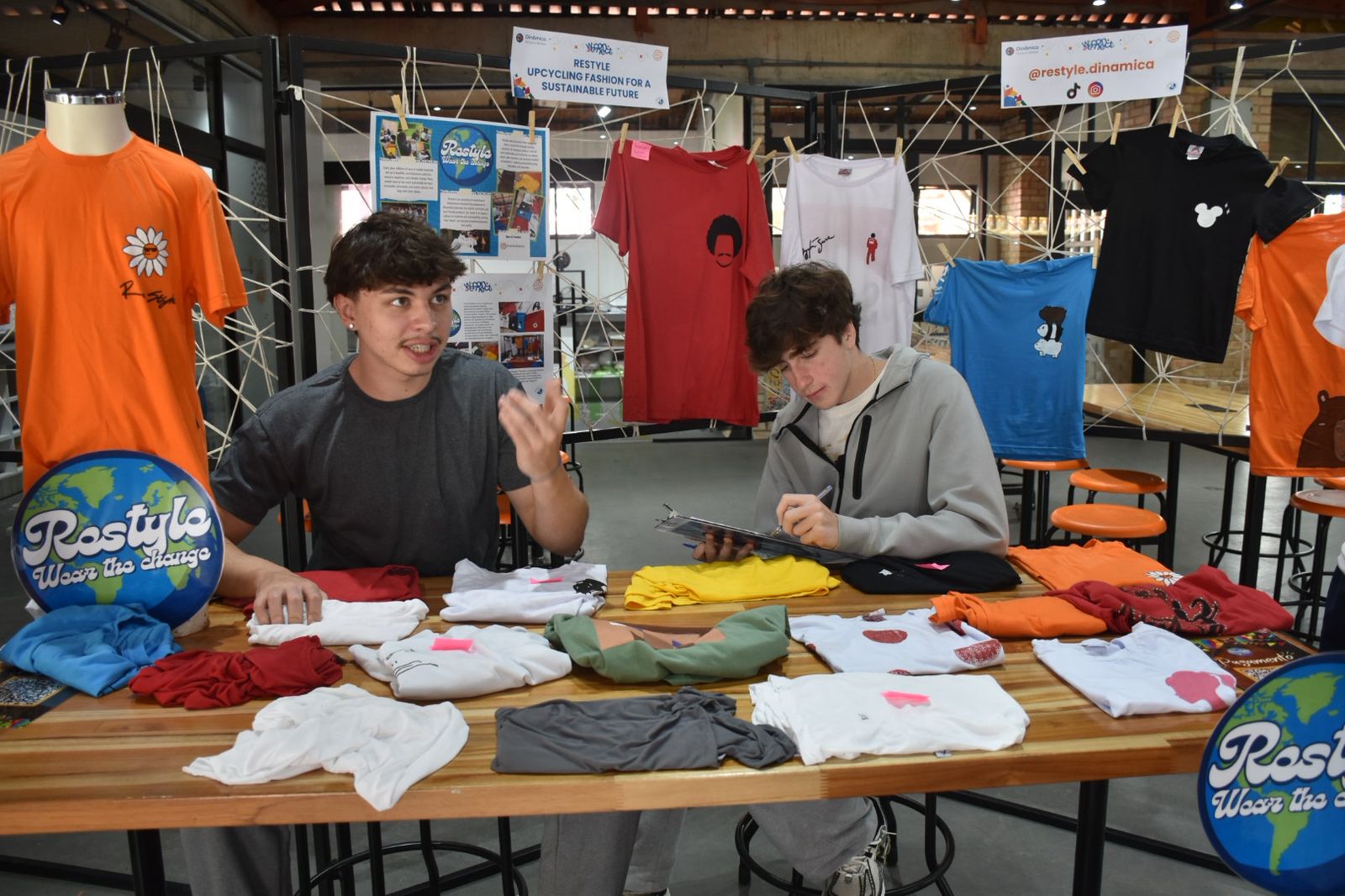 No contexto das aulas de Empreendedorismo com a professora Pauline Bitzer, os estudantes da 3ª série ano desenvolveram, ao longo do semestre, o projeto ReStyle, uma startup voltada à conscientização sobre consumo responsável e à valorização da moda sustentável por meio do upcycling — processo que consiste em transformar peças de roupa descartadas em novos produtos de maior valor e utilidade.